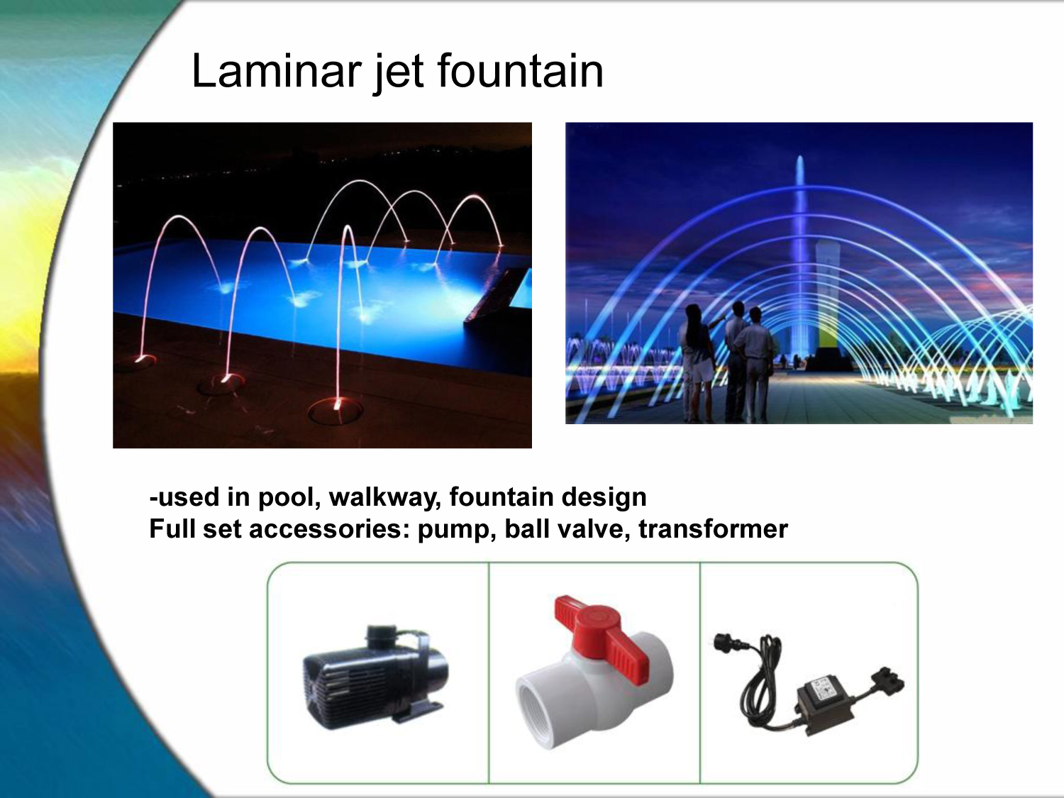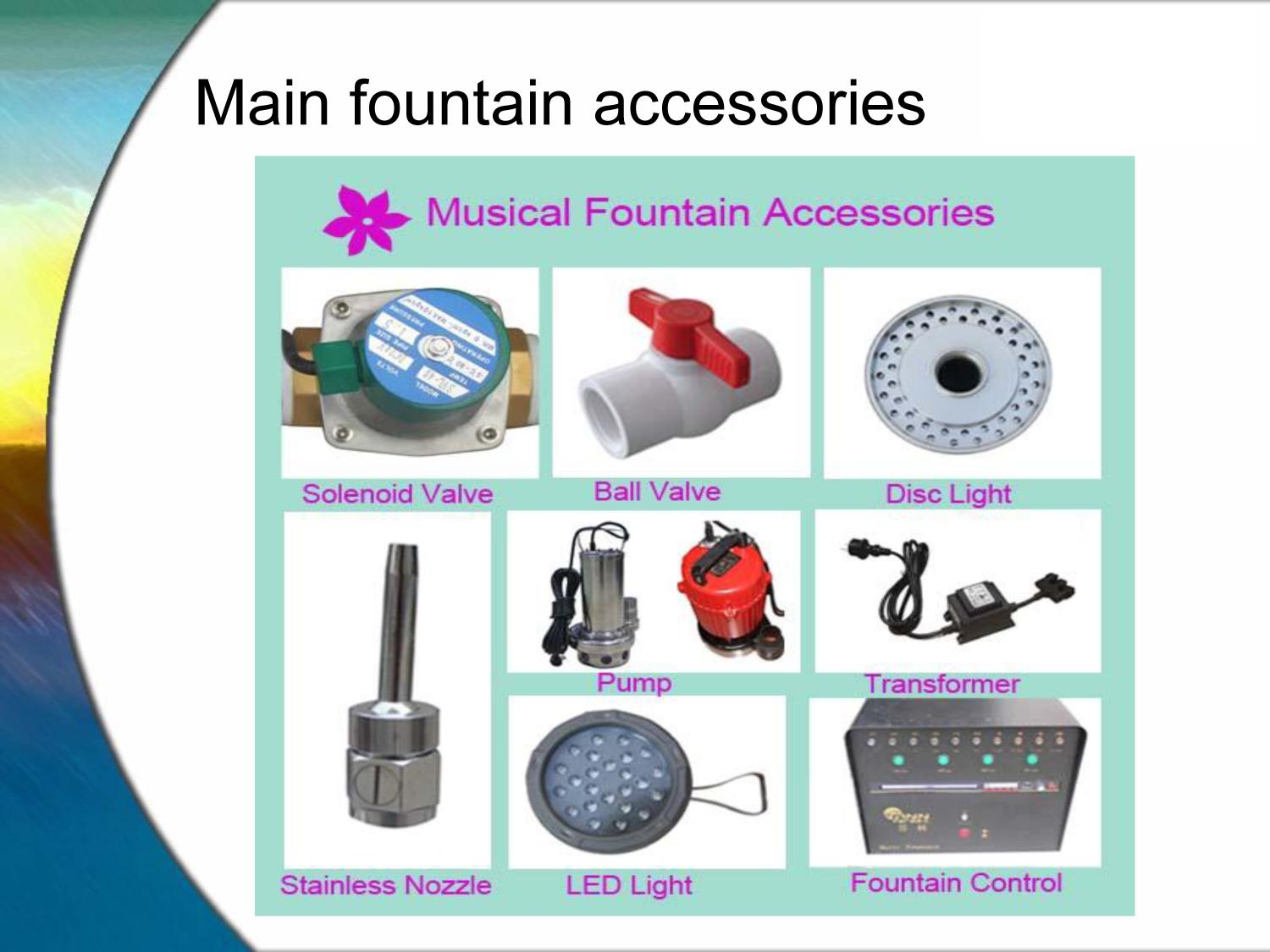 Home | Water Fountain | Solenoid Valve | Water Pump | Spray Nozzle | Fountain Controller | RGB Led | Accessories | Design & Installation |